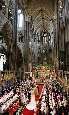 Splendour: Only an hour earlier, the new Duchess of Cambridge was was being walked down the aisle